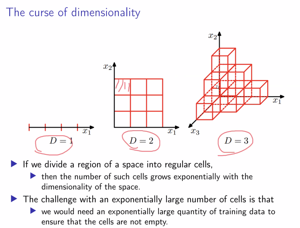 - 고차원에서는 구간을 나누는 셀(cell) 수가 폭발적으로 늘어나