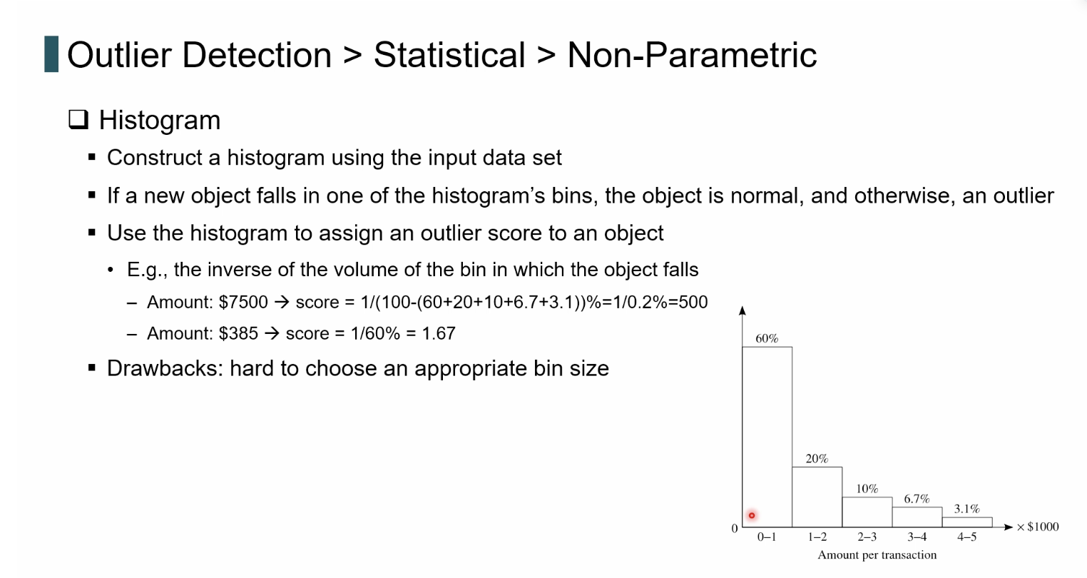 아웃라이어탐지의 접근방식으로는 파라메트릭, 넌파라메트릭,프록시미티(=거리/밀도 기반 근접성) 기반방법이 있다.
