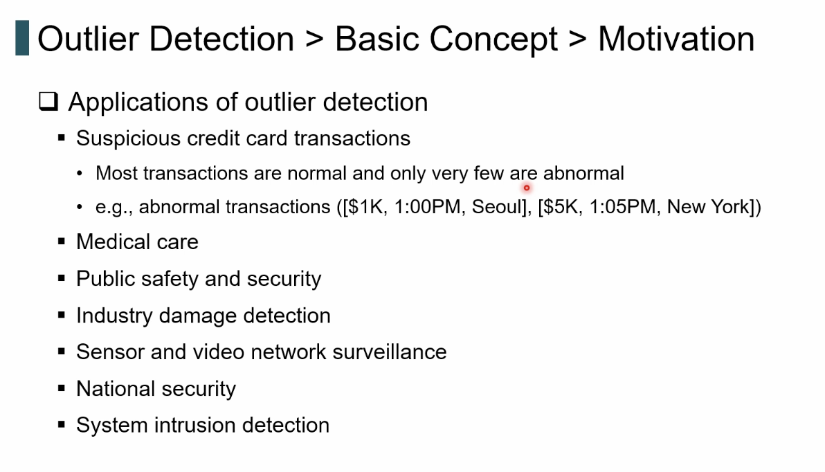 즉, 대부분의 데이터가 형성하는 규칙 또는 밀도 범위에서 벗어나 통계적으로 희귀한 점이다.